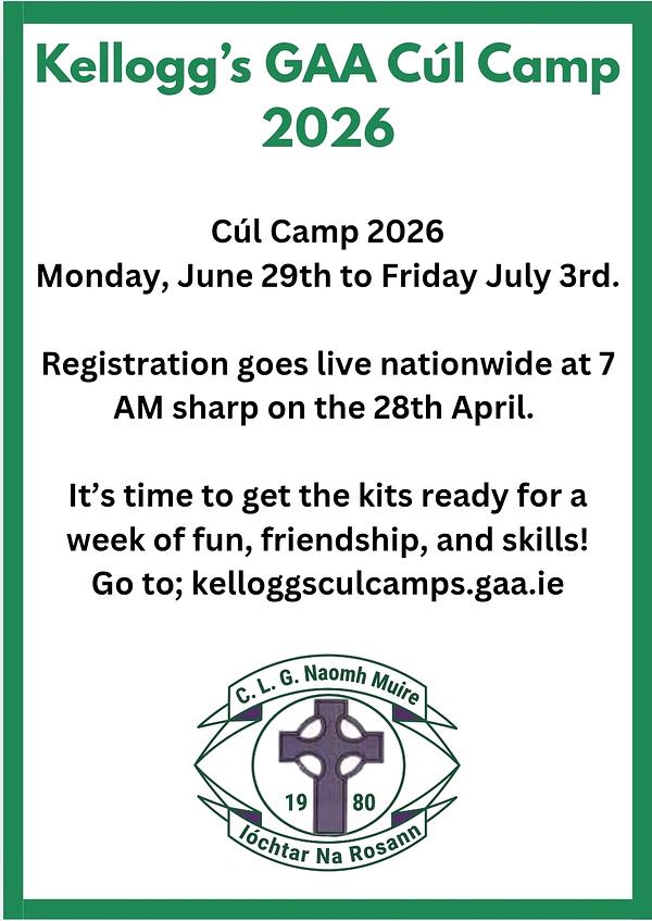 We are thrilled to announce the dates for our Kellogg’s GAA Cúl Camp 2026.